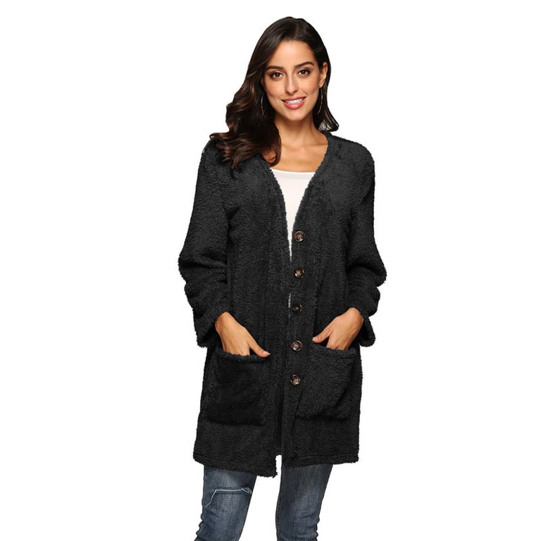 Women's cardigan with button fastening. Loose fit with long sleeves. Side pockets. Warm, pleasant material. Available in multiple colour options.