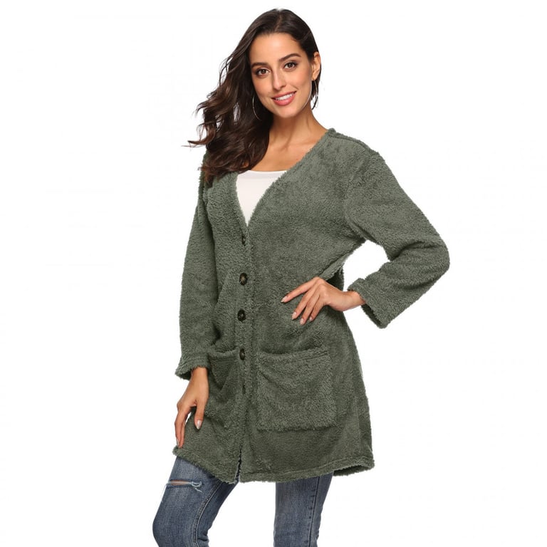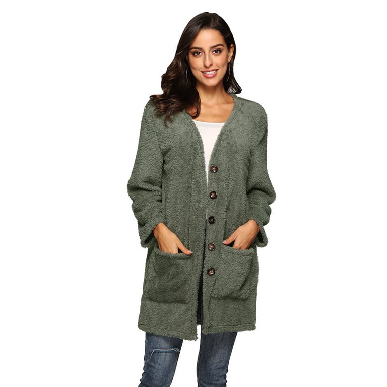 Women's cardigan with button fastening. Loose fit with long sleeves. Side pockets. Warm, pleasant material. Available in multiple colour options.