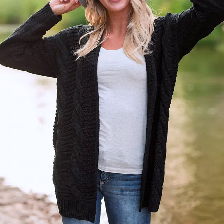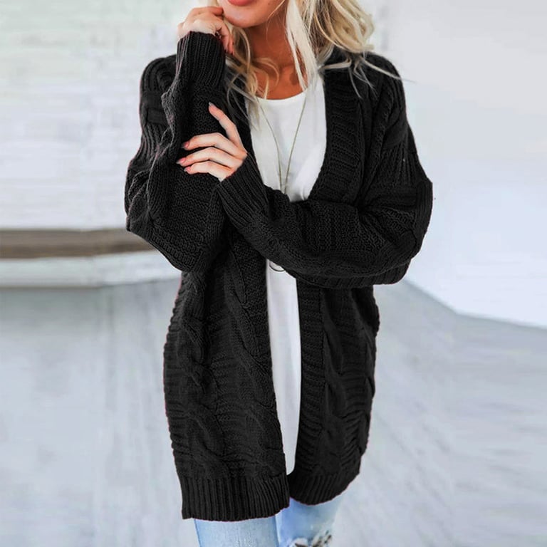 Women's knitted cardigan with a cable pattern. Loose oversized fit without fastening. Long wide sleeves. Available in multiple colour options.