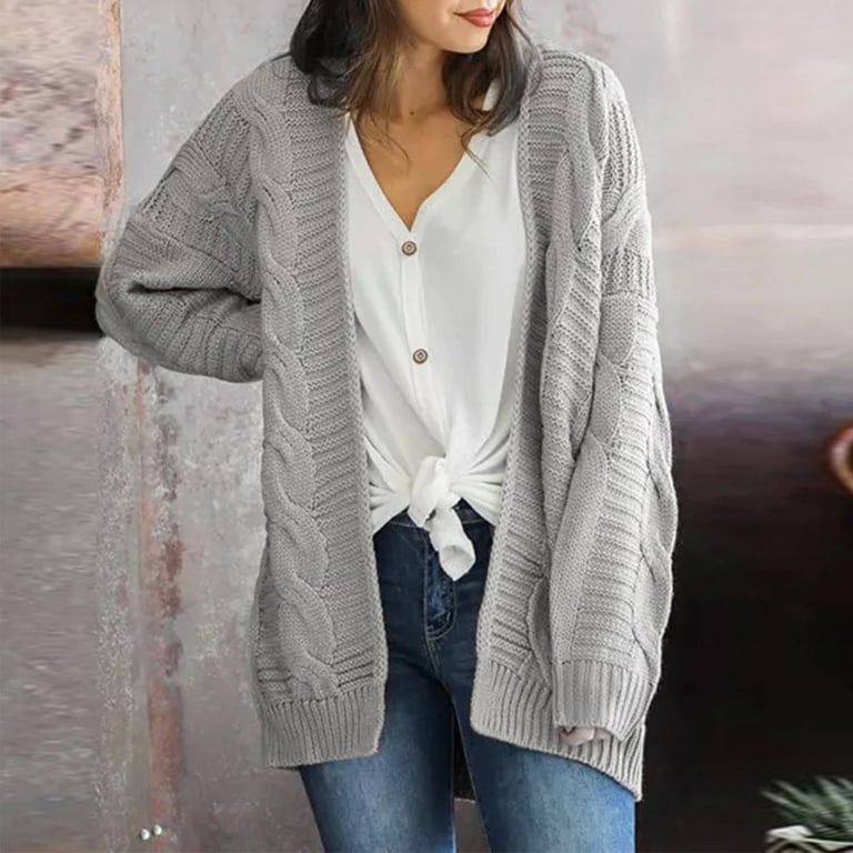 Women's knitted cardigan with a cable pattern. Loose oversized fit without fastening. Long wide sleeves. Available in multiple colour options.