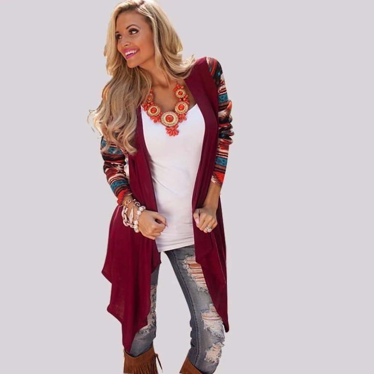 Stylish women's cardigan that will make you look great and is perfect for spring and summer! The beautiful patterned sleeves perfectly complement the overall outfit.