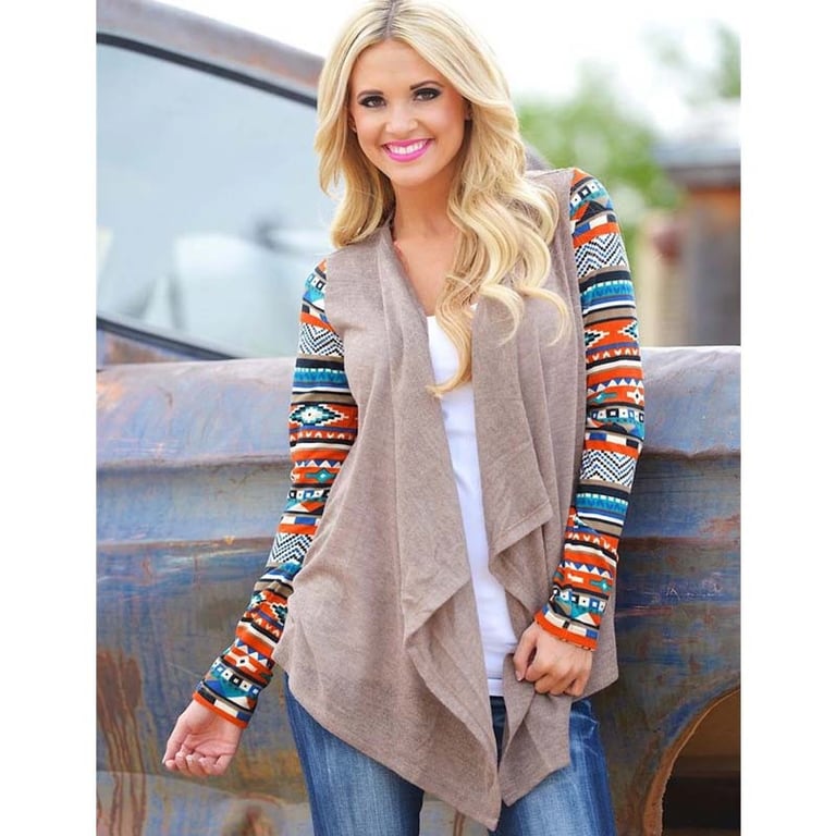 Stylish women's cardigan that will make you look great and is perfect for spring and summer! The beautiful patterned sleeves perfectly complement the overall outfit.
