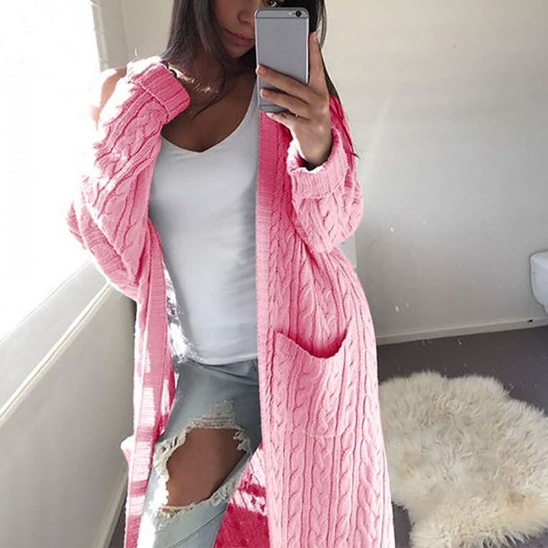 Women's long cardigan. Loose fit without fastening. Long sleeves. Two side pockets. One size fits all. Available in multiple colour options.