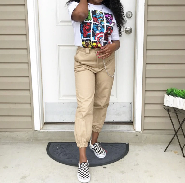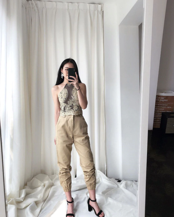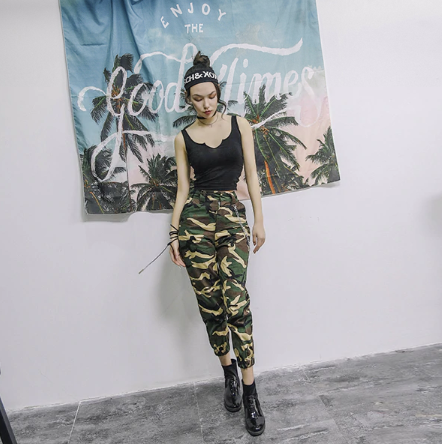 Women's Cargo Trousers with Chain - Beige
