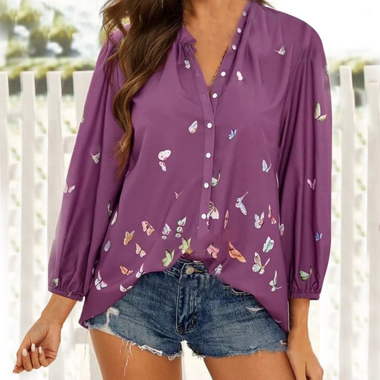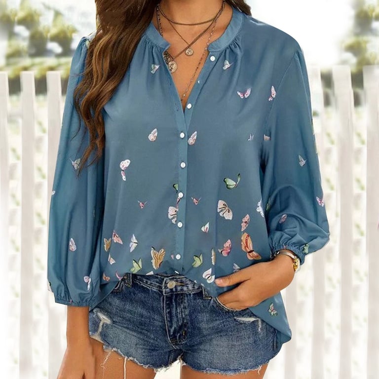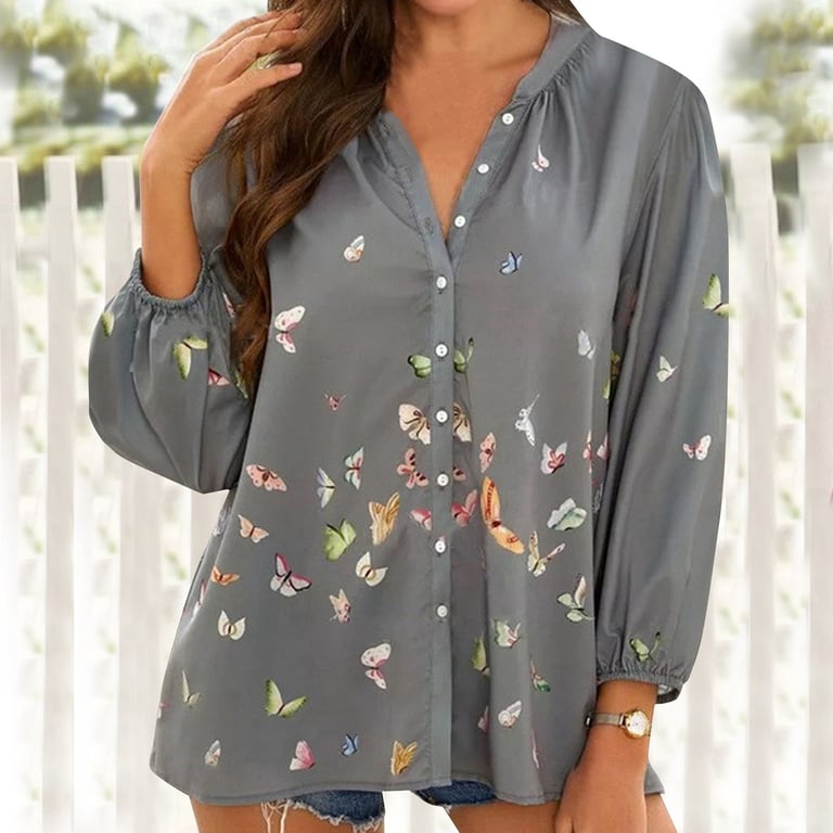 Beautiful women's casual blouse with a cute print of small butterflies.