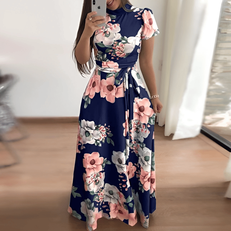 Women's Casual Floral Dress with Short Sleeves – Plus Size