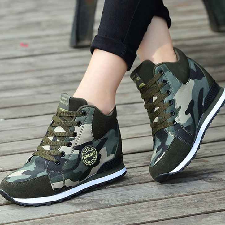 Tags: women's shoes, sneakers, high-top, camouflage, laces, patch, comfortable, spring, women, footwear, stylish, modern, quality