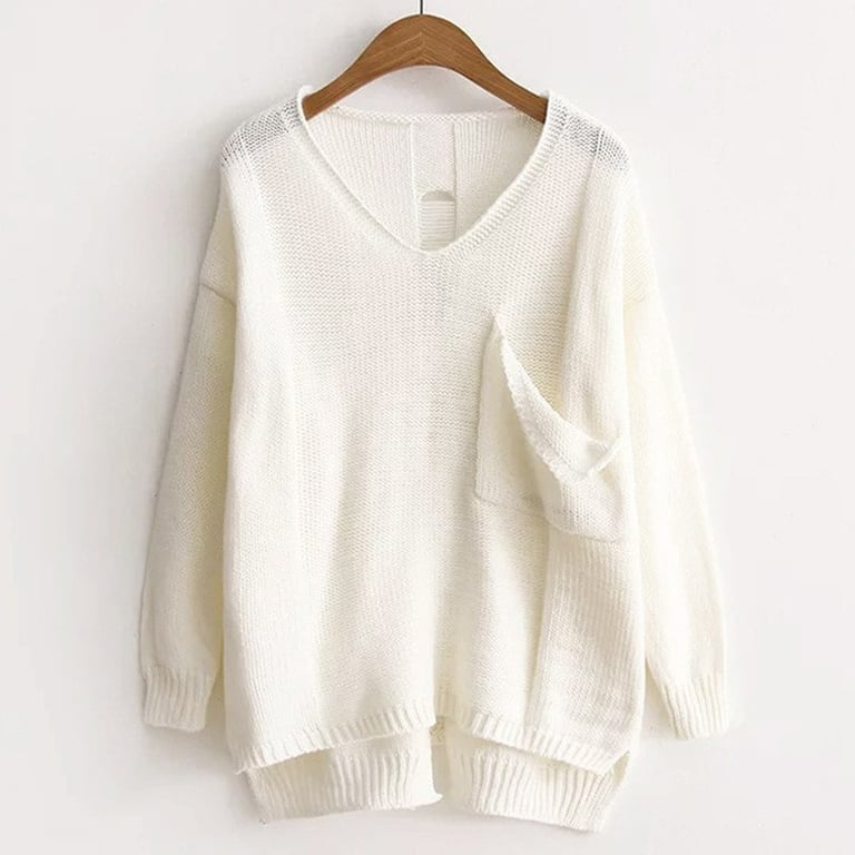Elegant sweater that evokes a sense of effortless elegance. It features a fictitiously torn pocket on the chest and perforated back.