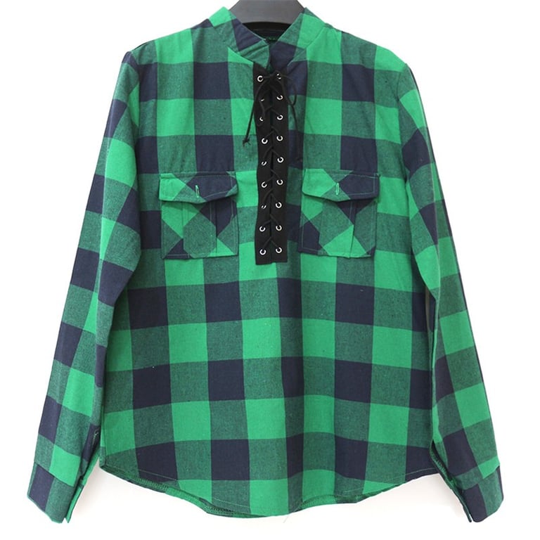 Instead of classic buttons, it features lacing.