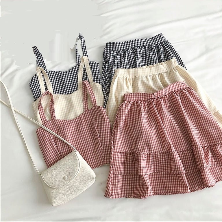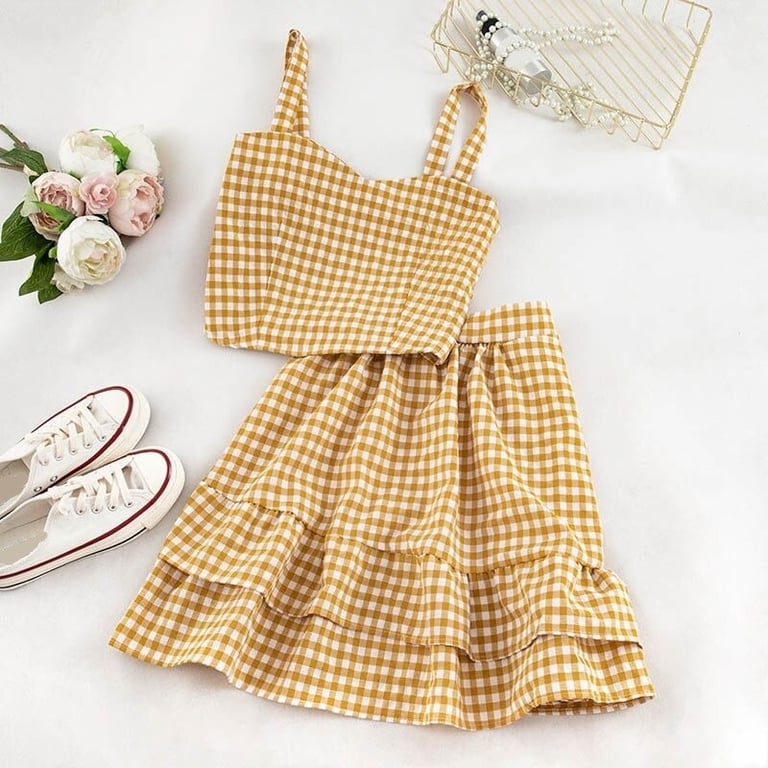 Women's checked crop top and skirt