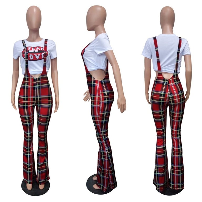 Women's checked trousers with suspenders