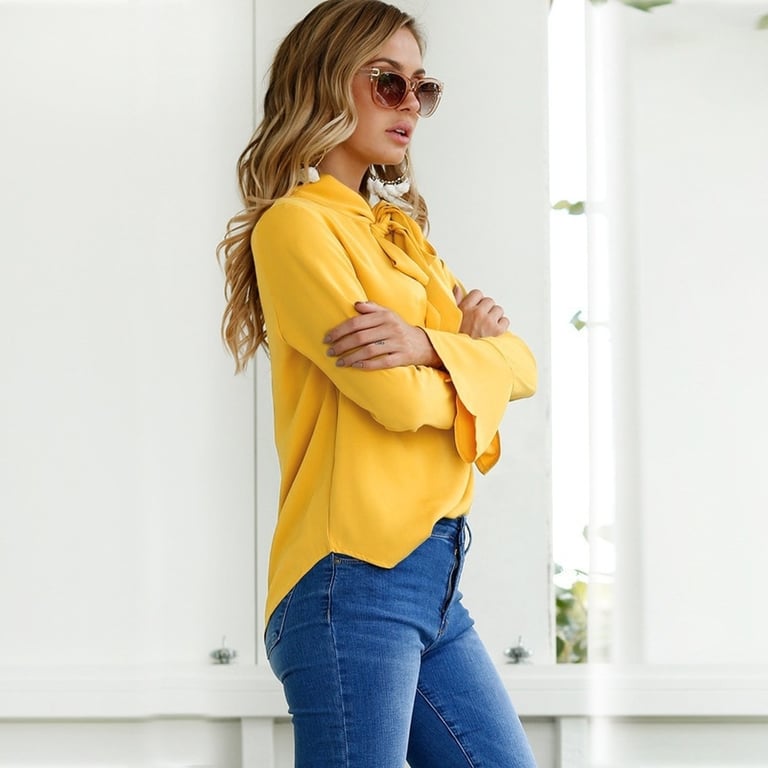Women's Chiffon Blouse with Bow and Long Sleeves