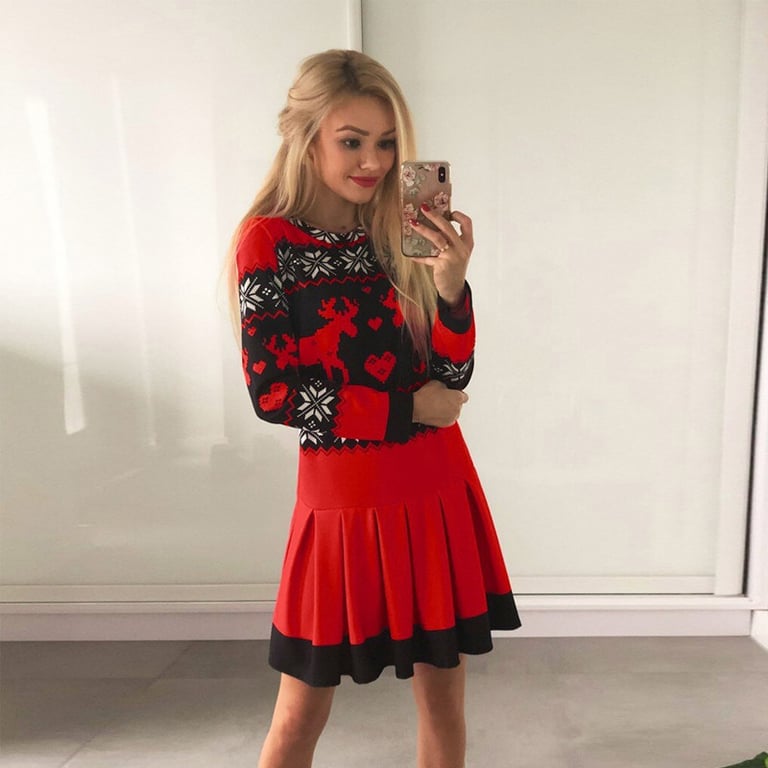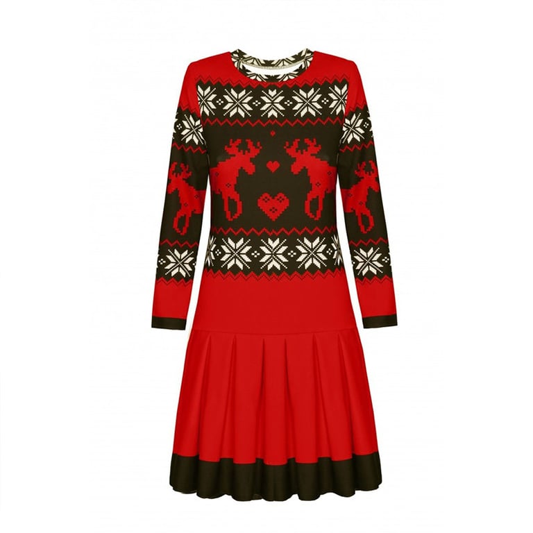 Women's elegant dress with Christmas reindeer motifs.