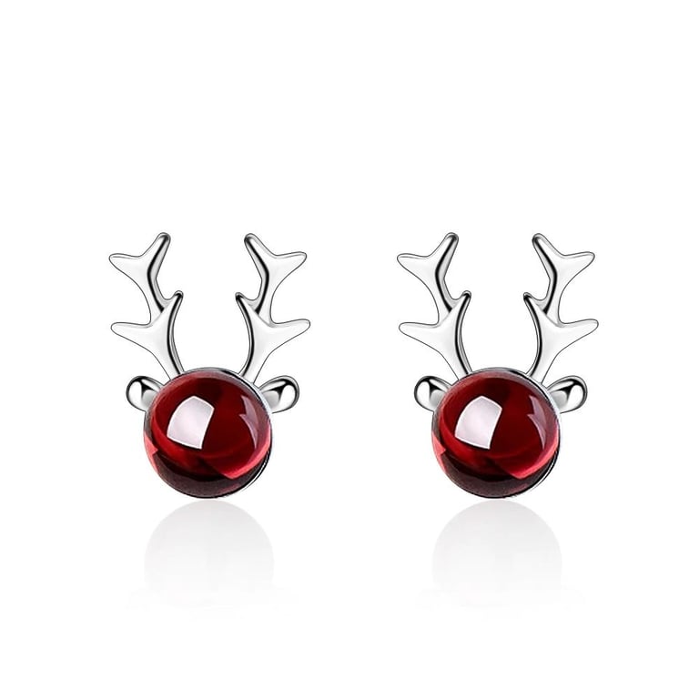 Material: Christmas earrings with a reindeer: precious metal, zircon