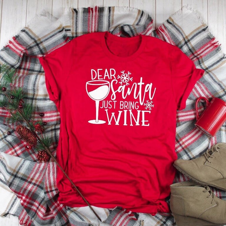 Women's short-sleeved t-shirt with a round neckline. Loose fit. Christmas-themed print on the front.