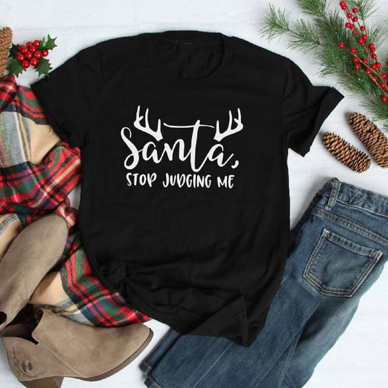 Women's short-sleeved t-shirt with a round neckline. Loose fit. Christmas-themed print on the front.