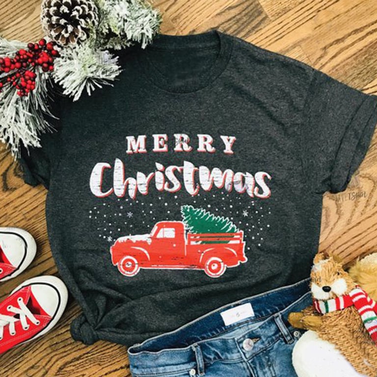 Women's short-sleeved t-shirt with a round neckline. Loose fit. Original print with a Christmas motif on the front.