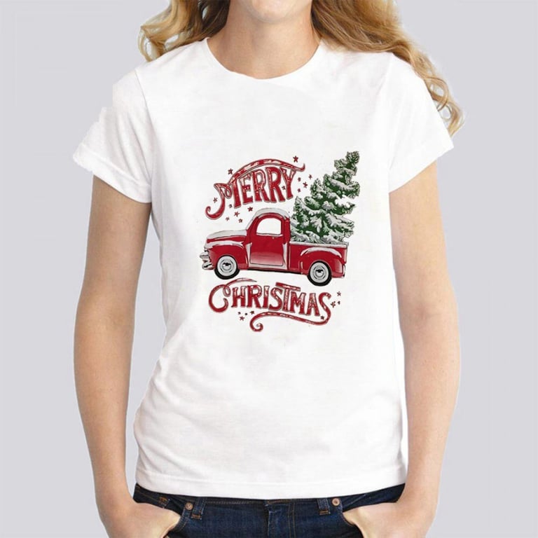 Women's short-sleeved t-shirt with a round neckline. Christmas-themed print on the front. Loose fit.
