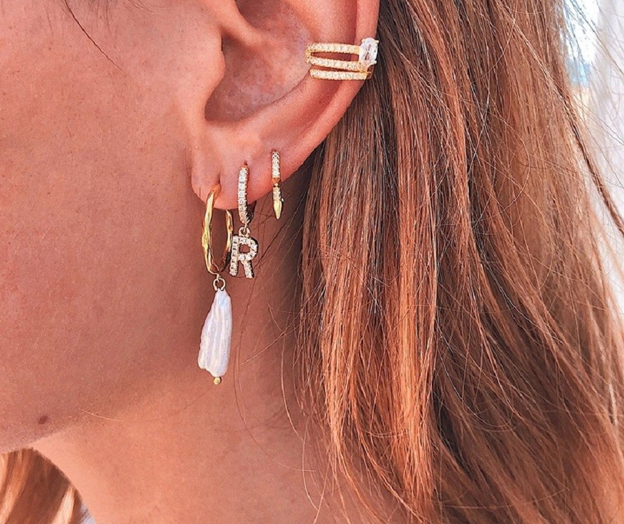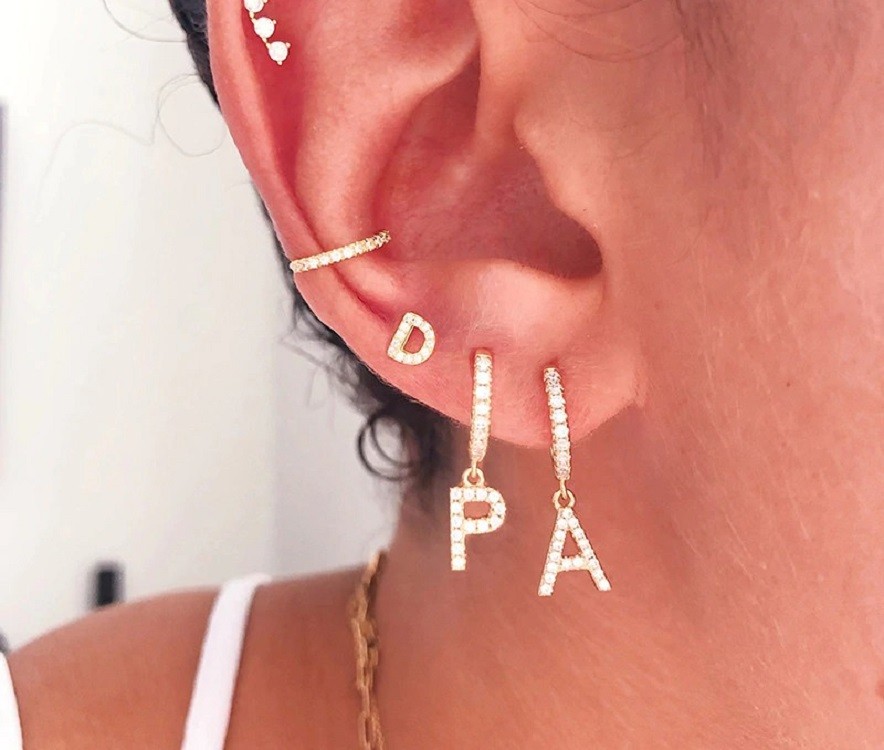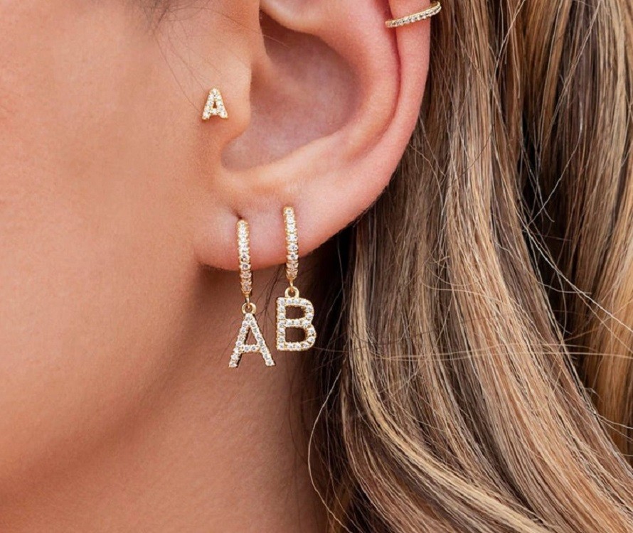 Women's circular earrings with letters of the alphabet