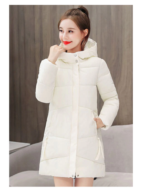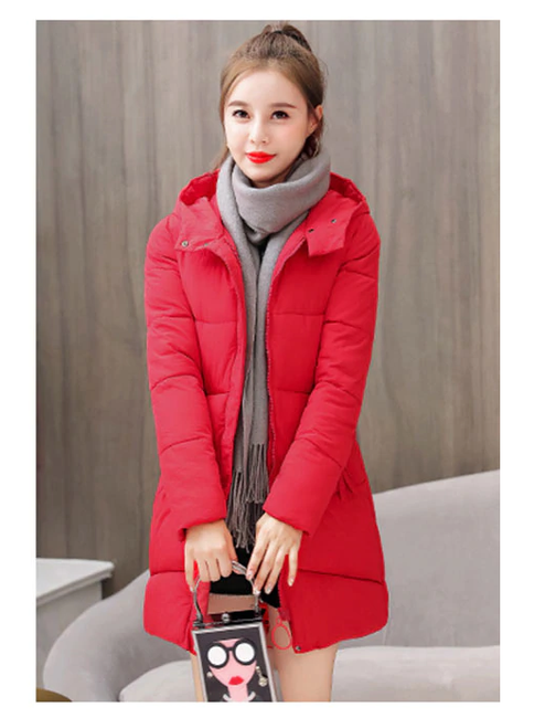 The coat is solid-coloured, features a zip fastening, and is equipped with a hood and prominent pockets where you can hide your hands in case of extreme cold.