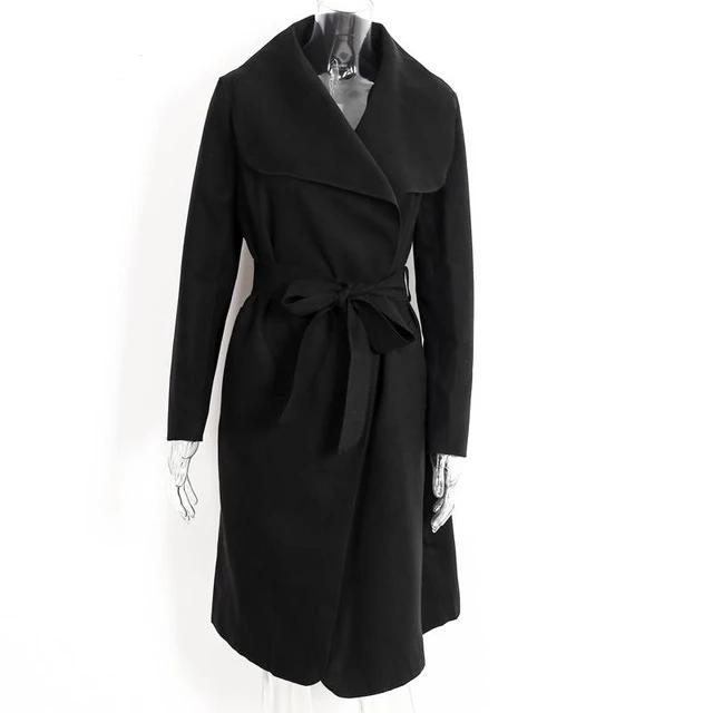 Women's classic coat with a waist tie for everyday wear.