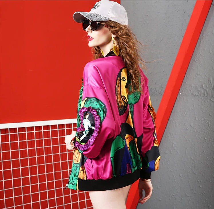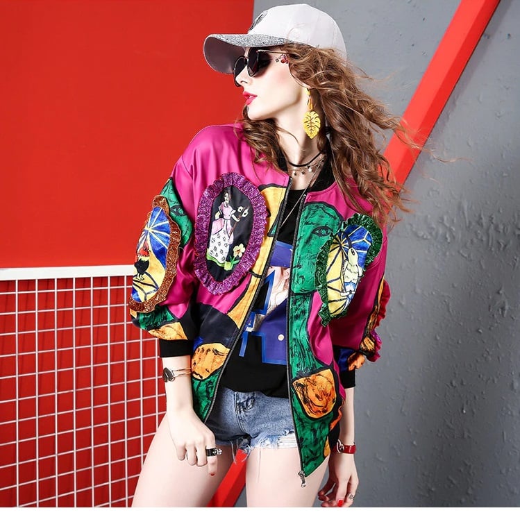 • Tags: bomber, women's bomber, spring bomber, colourful bomber