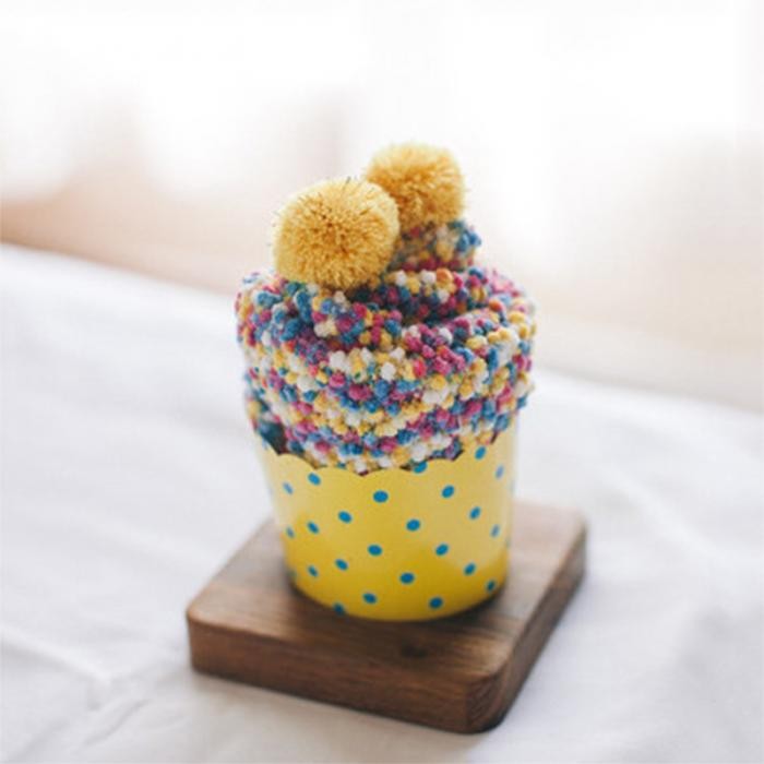 The pom poms add a touch of playfulness.