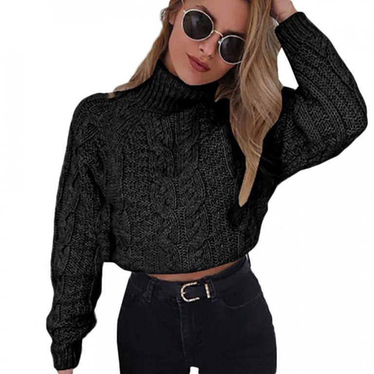 Women's knitted sweater with a cable pattern and a roll neck. The sweater has long sleeves and a cropped fit. Available in multiple variants.