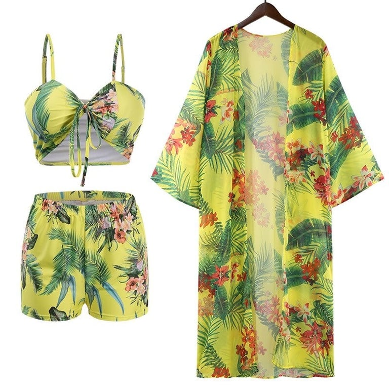 Package contents: 1x crop top, 1x shorts, 1x cover-up