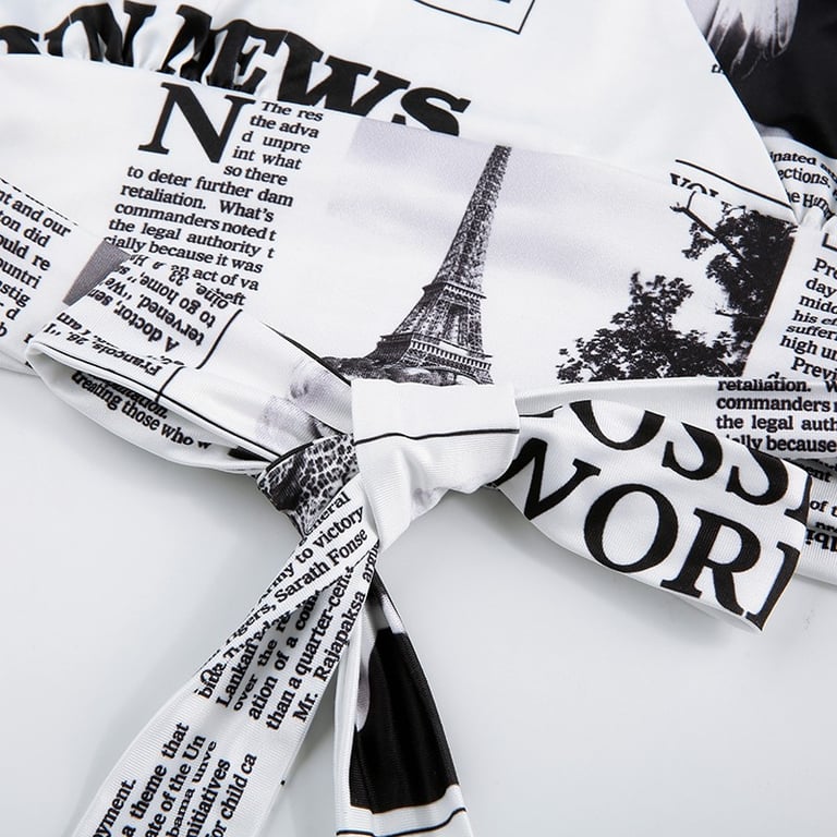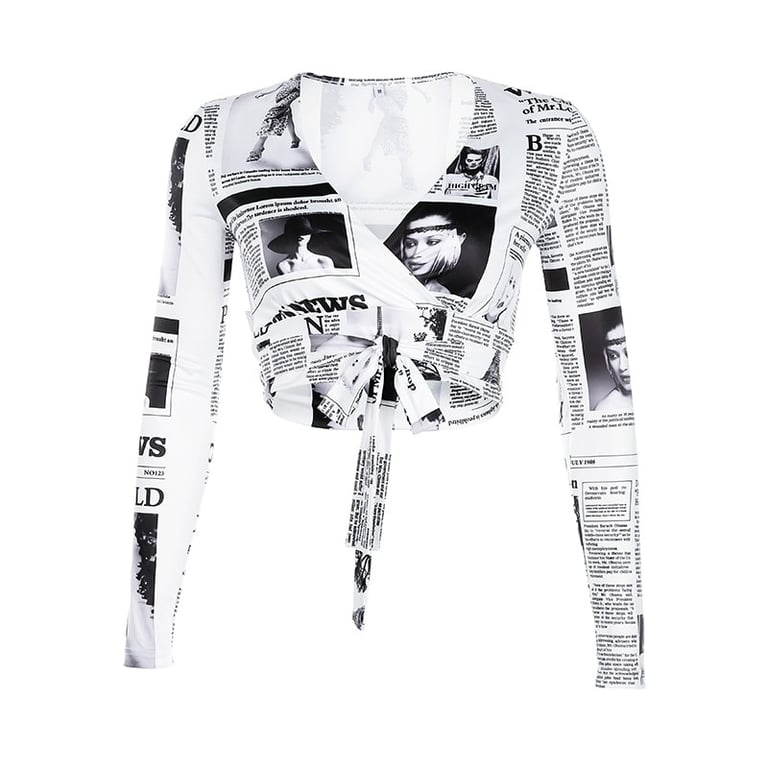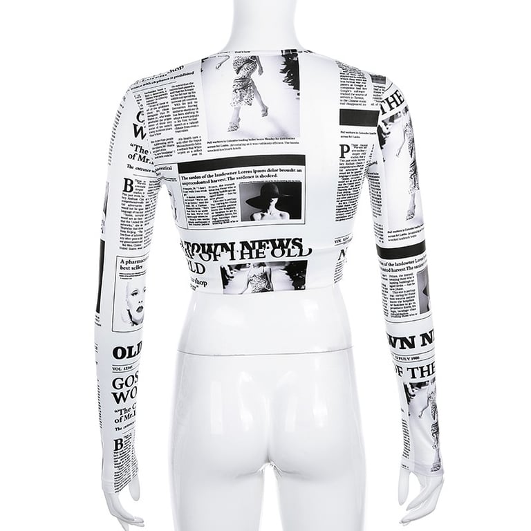 Women's Crop Top with Newspaper Print