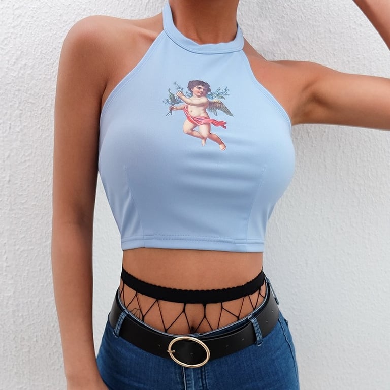 Women's Angel Print Crop Top