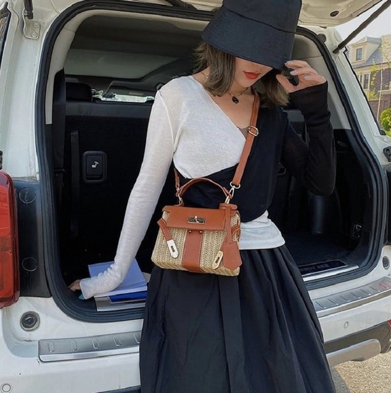 Material: straw, PU leather, polyester