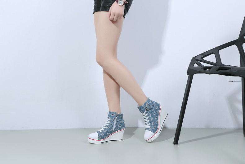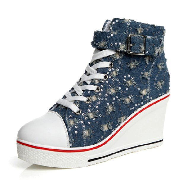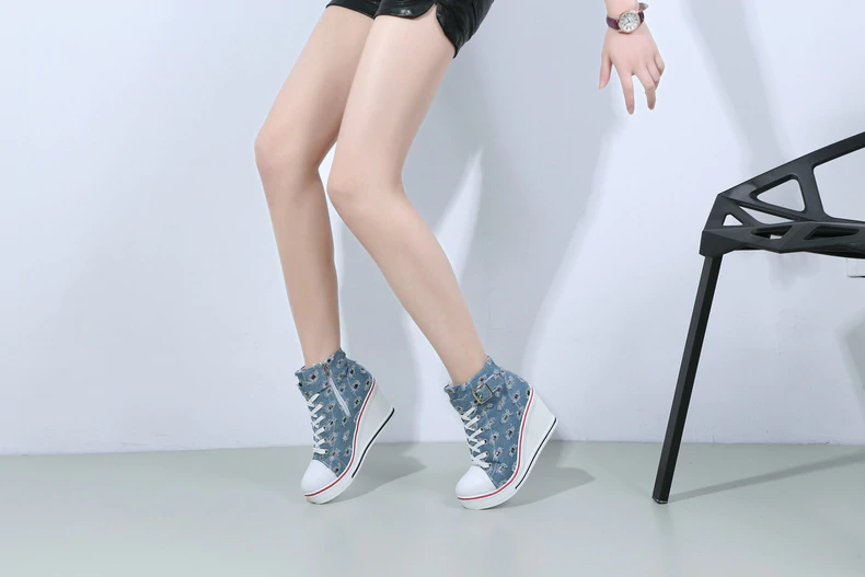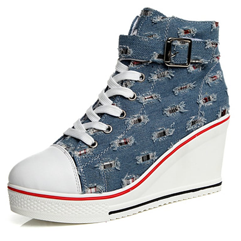 These denim trainers are comfortable and of high quality. The trainers fasten with laces as well as a zip.