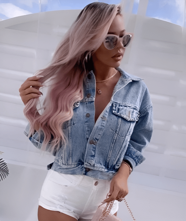 • A women's denim jacket with a heart-shaped embellishment on the back is a must-have in your wardrobe!