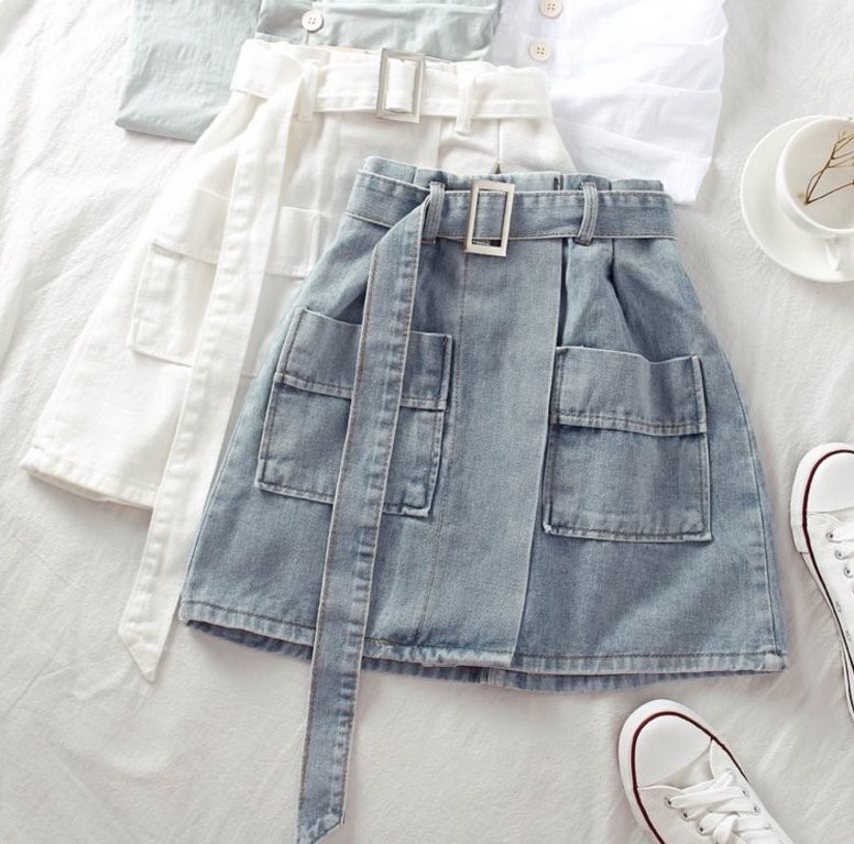 Women's Denim Mini Skirt with Belt