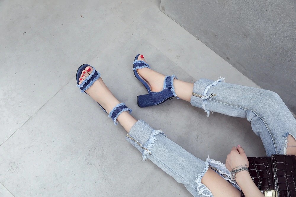 Put on these quality denim sandals and be charming!