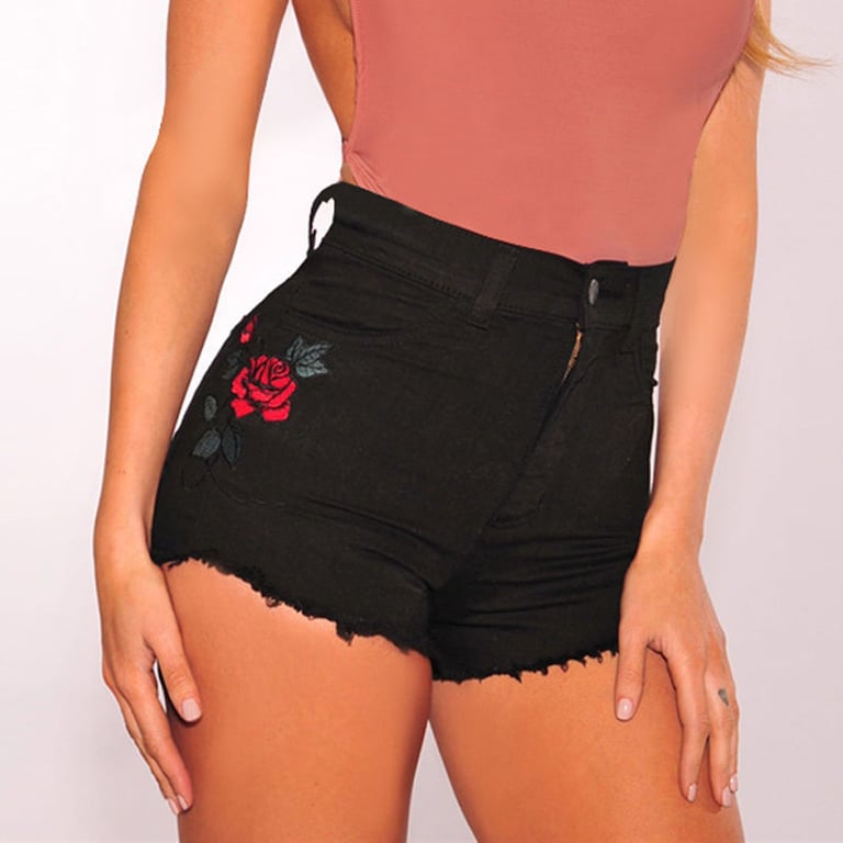 Women's Denim Shorts with Rose Patch