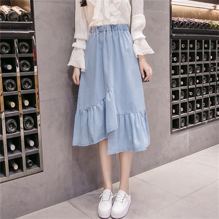 Women's Denim Skirt with Ruffle