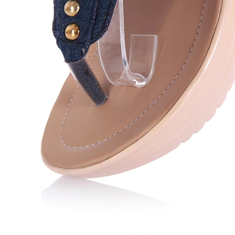 These denim sandals in an unconventional design are a great choice for summer days.