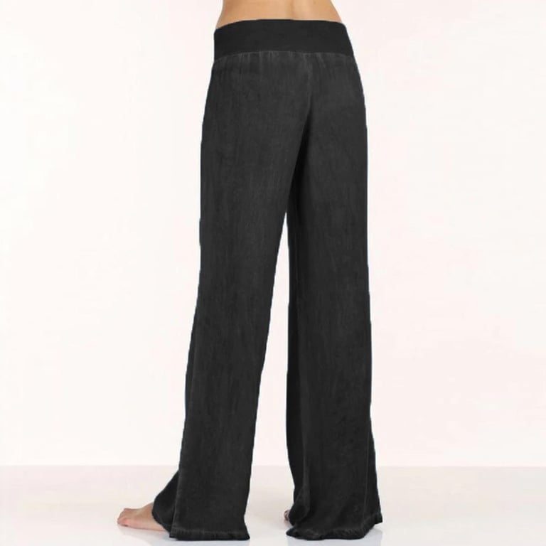 Women's loose-fitting denim trousers with wide flared legs. The trousers have a mid-rise elasticated waistband. Made from a stretchy, comfortable material. Available in several variations.