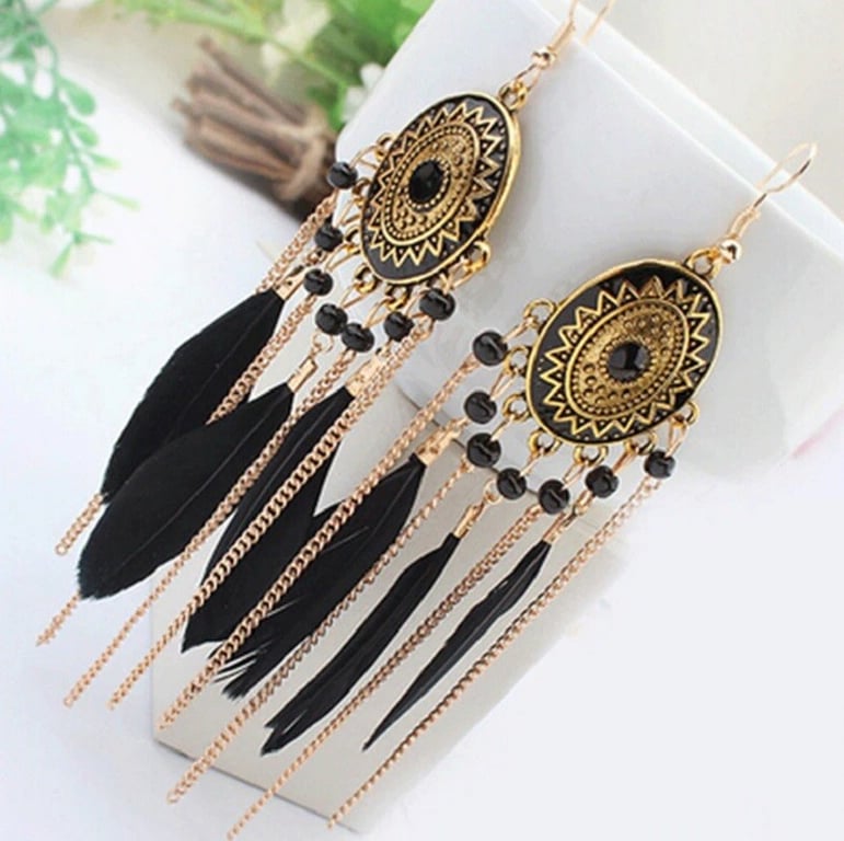 Material: costume jewellery metal, feathers