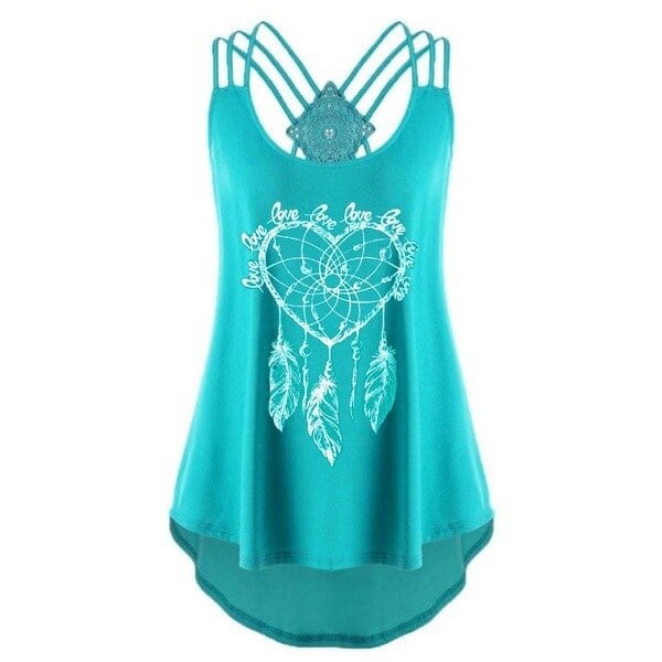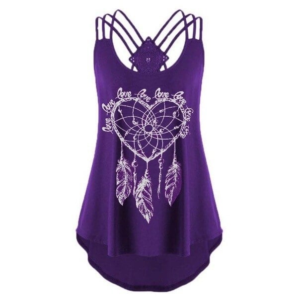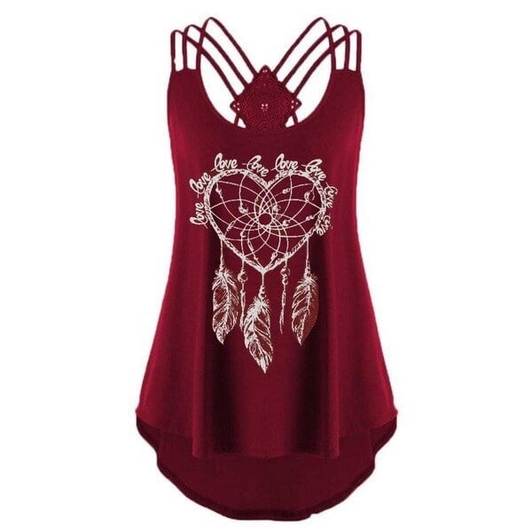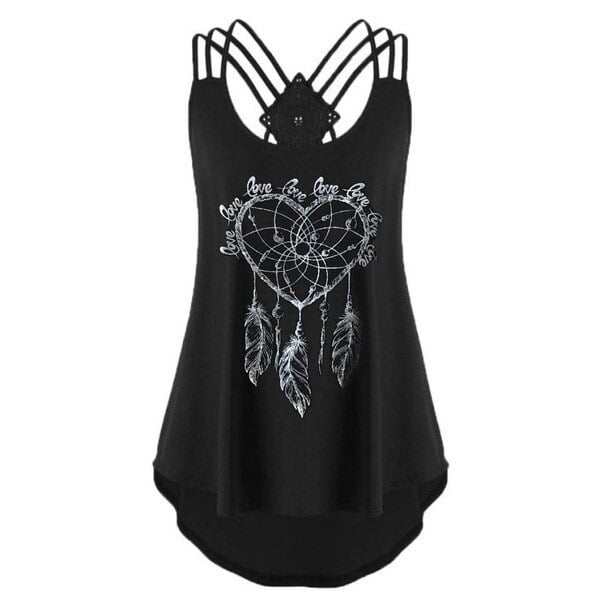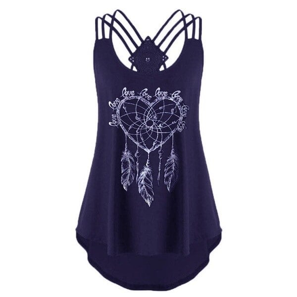 Women's sleeveless summer top featuring a dreamcatcher design. It crosses at the back. Loose fit, perfect for summer.