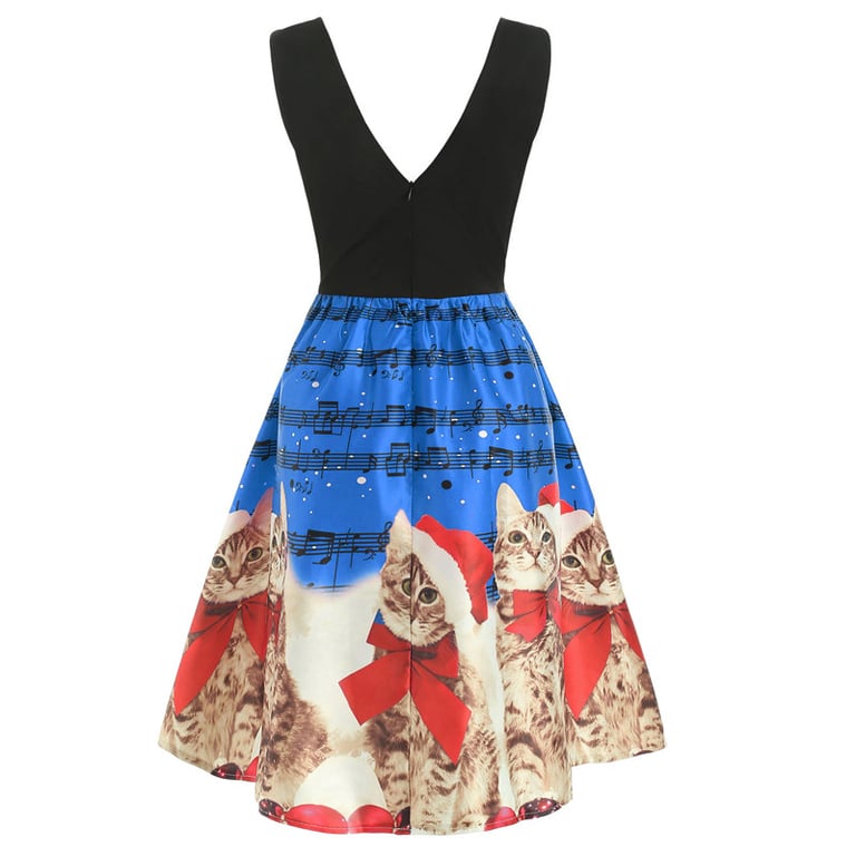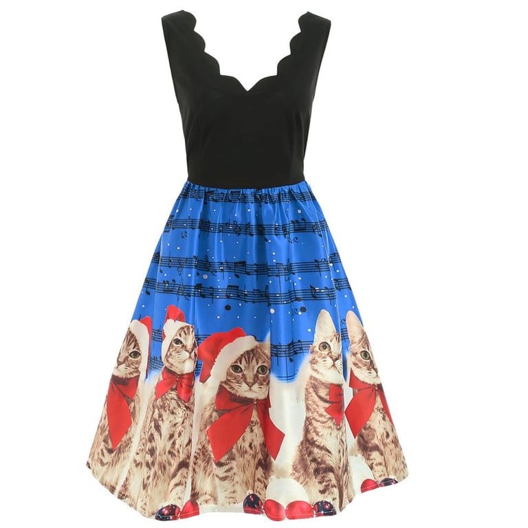 Beautifully cut elegant dress with an attractive cat print for a lovely experience of the Christmas atmosphere. Or just for fun in the summer months? It's up to you when you pull this piece out of your wardrobe. However, we can agree that you need it.