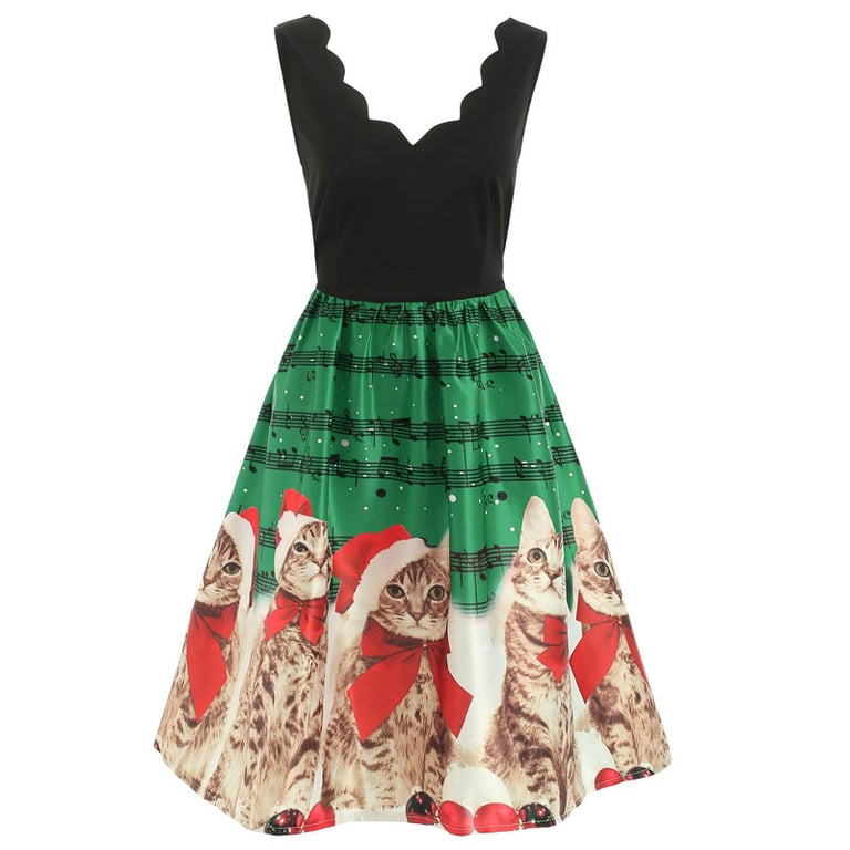 Beautifully cut elegant dress with an attractive cat print for a lovely experience of the Christmas atmosphere. Or just for fun in the summer months? That's up to you when you pull this piece out of your wardrobe. However, we can agree that you need it.
