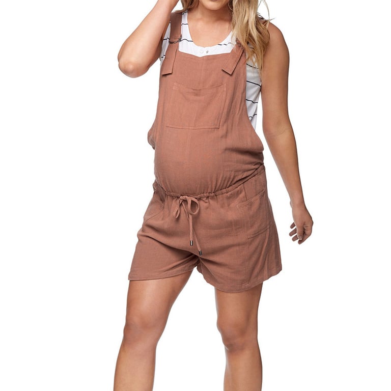 Comfortable dungaree shorts for expectant mothers.