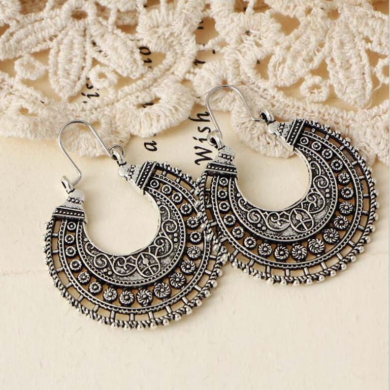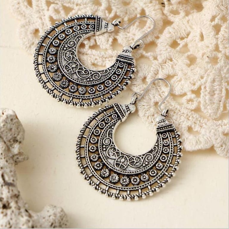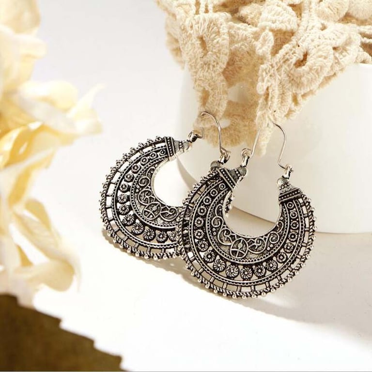 Elegant women's earrings in ethnic style are suitable as an accessory for dresses.