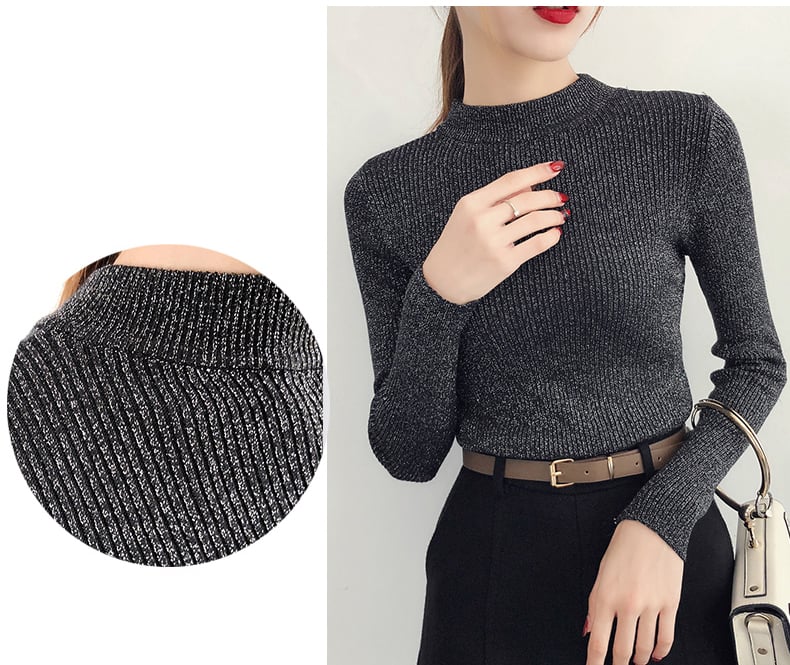 This women's elastic sweater features an elegant cut with a low turtleneck. Perfect for the spring season.