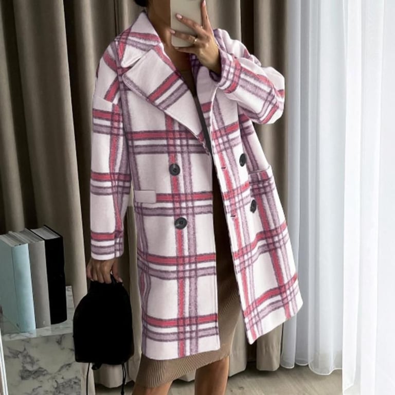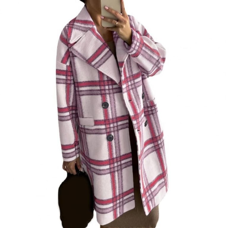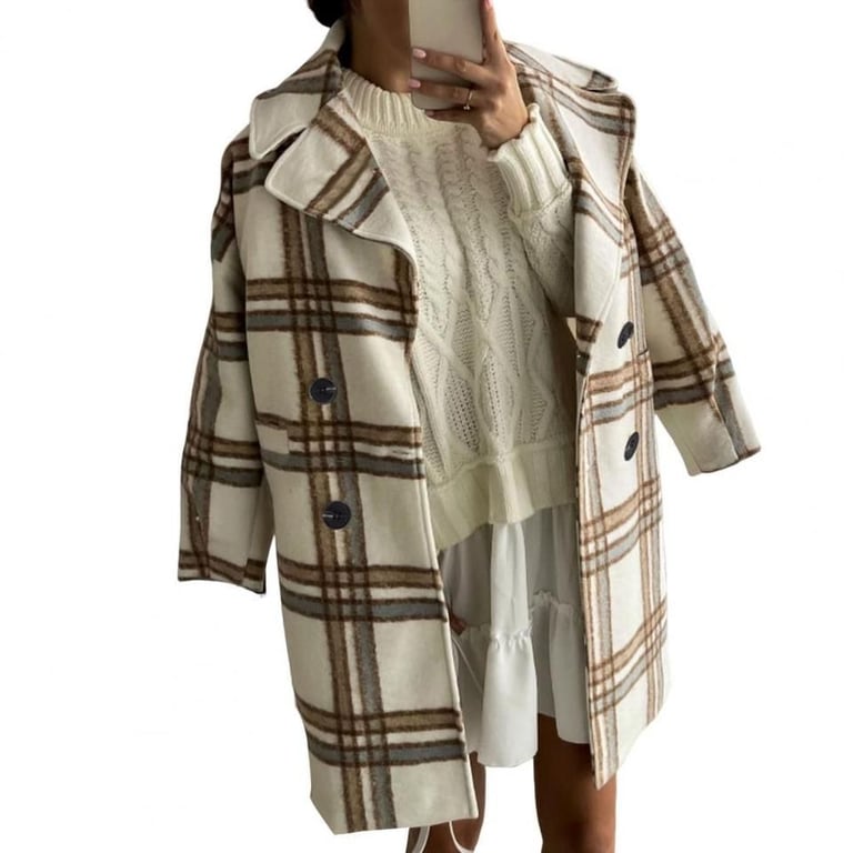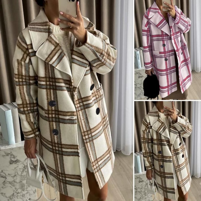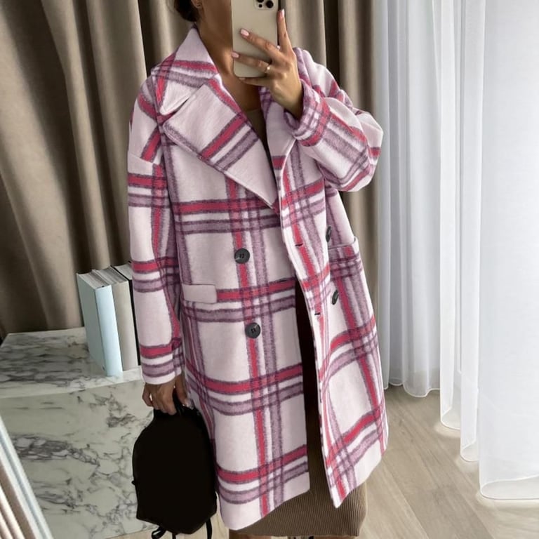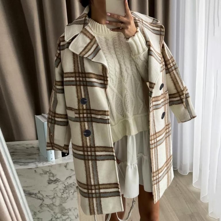 Stylish women's checked coat. The coat is suitable for cold weather.