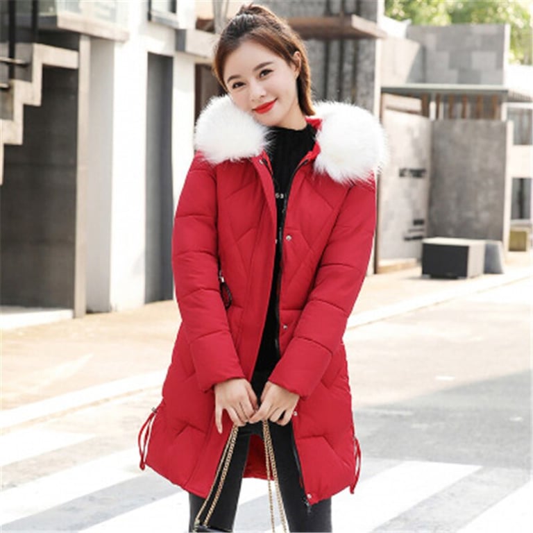 Stylish coat with V-shaped quilting and a designer fluffy collar.