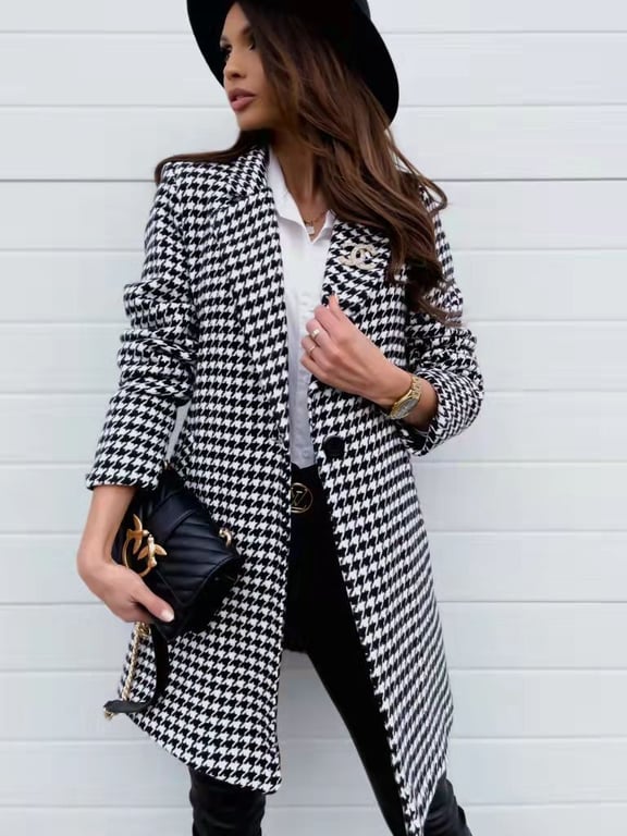 • Elegant blazer/coat for women in black and white with a single button for fastening at the waist.
